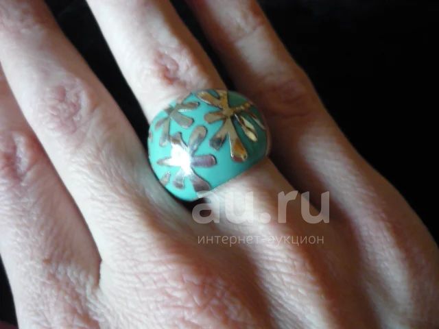 Дизайнерская вещь!Крупное кольцо из серебра 925 пробы(проба проставлена) с необычайно красивой эмалью бирюзового цвета.СОСТОЯНИЕ ИДЕАЛЬНОЕ. ВЫГЛЯДИТ ОЧЕНЬ ОРИГИНАЛЬНО .ПРЕКРАСНАЯ ЮВЕЛИРНАЯ РАБОТА, ИЗЫСКАННОЕ СОЧЕТАНИЕ МАТЕРИАЛОВ.Купила у надежного продавца,но размер не подошел,а изменить не получается.На 17 размер чуточку маловато.Полный размер 16.5 Вес изделия 9,28гр.Кольцо очень необычное и будет привлекать внимание 100%.Побоялась отдавать на изменение размера,чтобы не испортить такую красоту.Кольцо в самом деле шикарное.